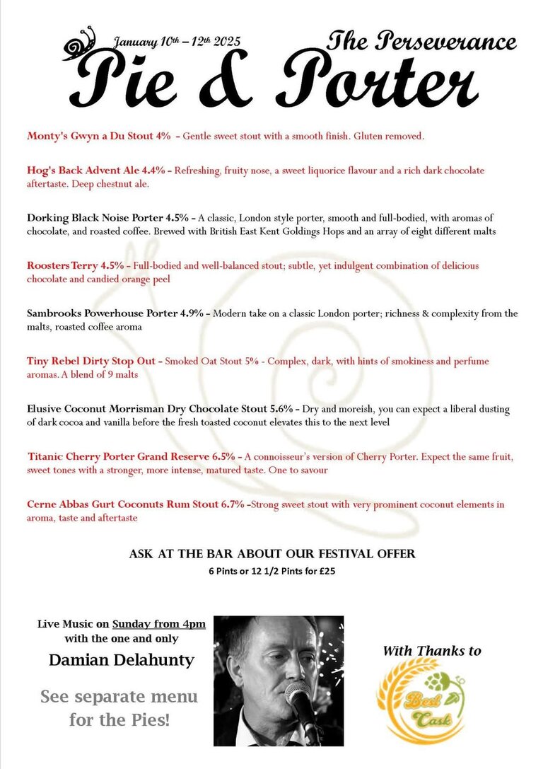 We hope that Nick is going to do his cheffing to produce 100's of wonderful pies to absorb the great porters & stouts he will choose for his festival.